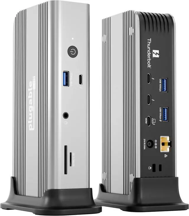 Productivity Multiplier: Meet the Plugable 11-in-1 Thunderbolt 5 docking station (TBT-UDT3). It features 3x Thunderbolt 5 ports (up to 120Gbps) with 15W Charging and support for up to dual 8K 120Hz displays, 2x USB 10Gbps, 1x USB 3.0, SD and MicroSD slots, 140W charging, 2.5G bps Ethernet, and Thunderbolt Share