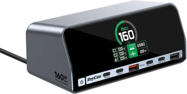 160W Ultra-Fast Docking StationDeliver a powerful charge with 160W of total output, capable of charging up to four devices simultaneously through three USB-C ports at 100W max each and one USB-A port at 12W max.