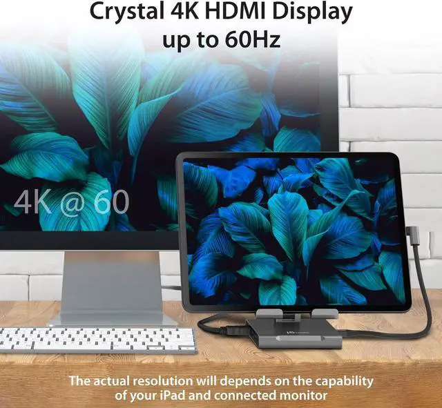 8 in 1 USB-C Dock This USB C hub for iPad Pro is equipped with HDMI 2.0 port, two USB Type-A 5Gbps ports, SD / microSD 3.0 card reader, audio/mic combo jack and PD 100W pass-through charging, giving you the connections you need for increased productivity. No need to install any drivers.