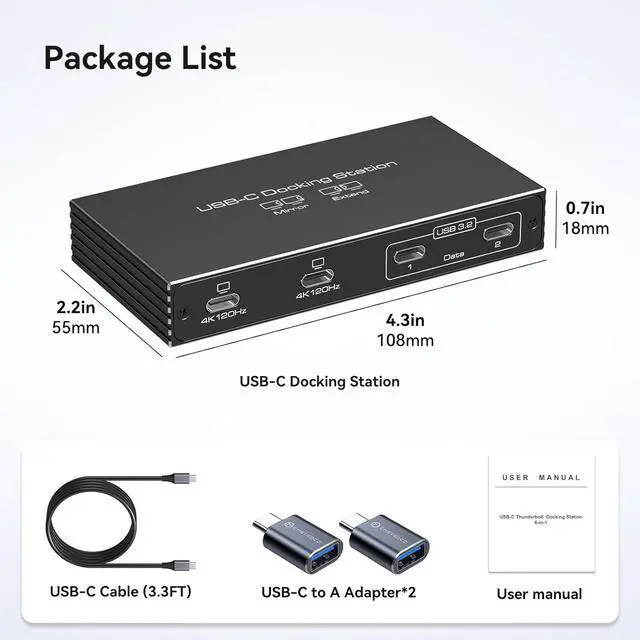 Reliable After Sales Service: You will receive a USBC to USBC hub*1, Type C to C cable*1, USB C to A adapter*2, and instruction manual*1. We offer a 1-year after-sales service guarantee. If you encounter any problems during use, please contact our after-sales service team via at any time, and we will resolve your issue within 24 hours