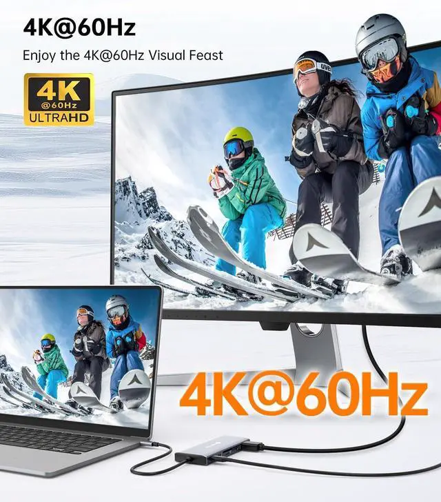 100W PD Fast Charging The USB-C Power Delivery port supports up to 100W input (87W available for laptop charging after hub operation). Keep your laptop fully powered even when multiple devices are connected, ensuring uninterrupted productivity.