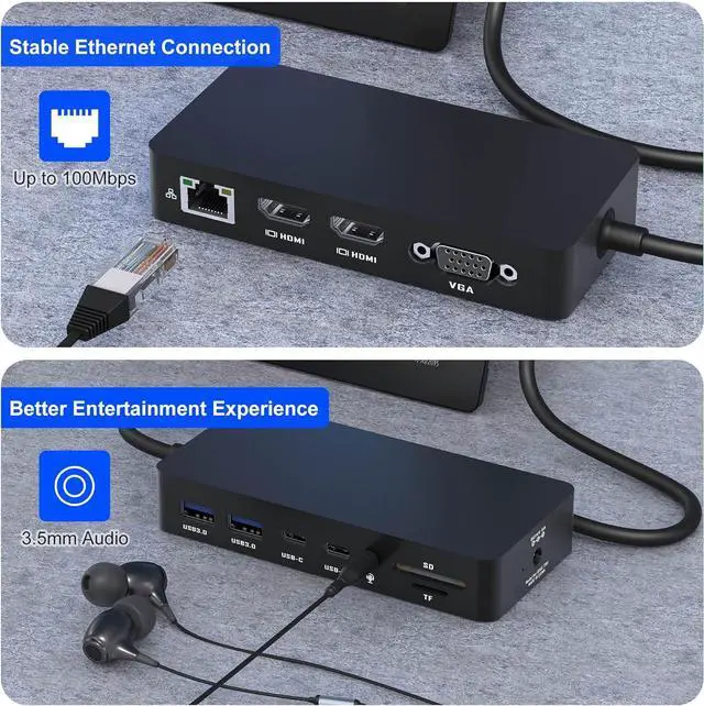 Rock-Solid Wired Networking & Immersive Audio: Eliminate Wi-Fi frustrations with stable 10/100 Mbps Ethernet critical for Zoom meetings, cloud backups, and lag-free gaming. Stream 4K without buffering while downloading large datasets. The integrated 3.5 mm jack delivers studio-grade audio for podcasts, gaming headsets, or late-night music sessions. Whether you' re working, gaming, or streaming, this dock has you covered.