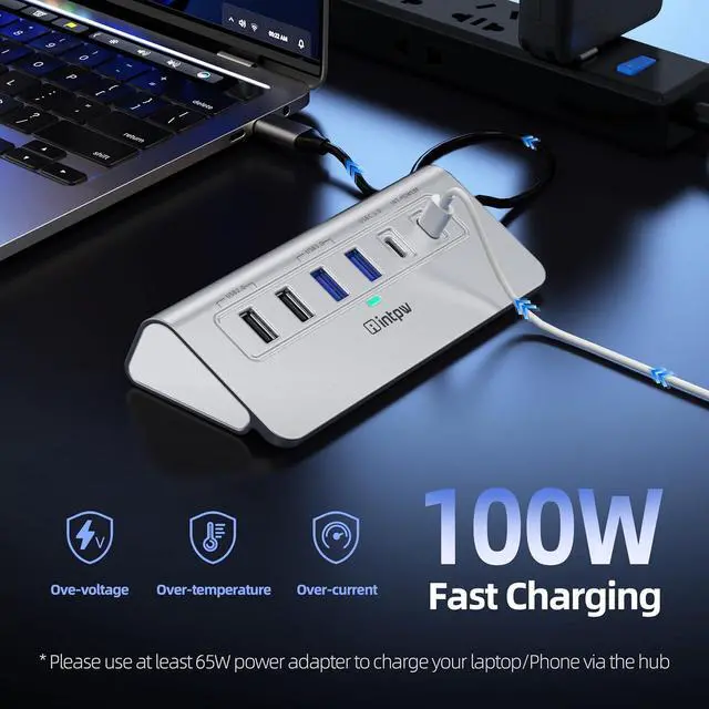 Fast Charging: Using the 100W USB-C PD charging port to charge your Type-C laptop and tablets. For a better experience, when you use the powered usb hub, please use at least 65W power supply to charge your laptop via hub. PD port not support data transfer