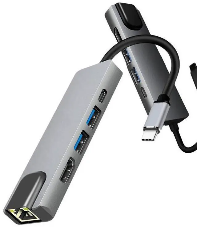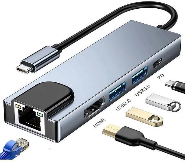 SOEWIOU 5-in-1 Type-C expansion hub turns a single USB-C port into multiple functional ports, including HDMI, high-speed USB ports, and Ethernet RJ45. Supports 4K@60Hz video output, stable gigabit network, fast data transfer, and plug-and-play. Slim and lightweight design for laptops, tablets, and mobile devices, ideal for office, home, and travel use.