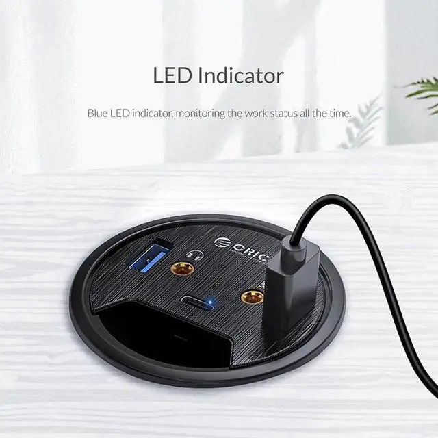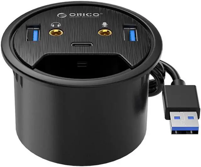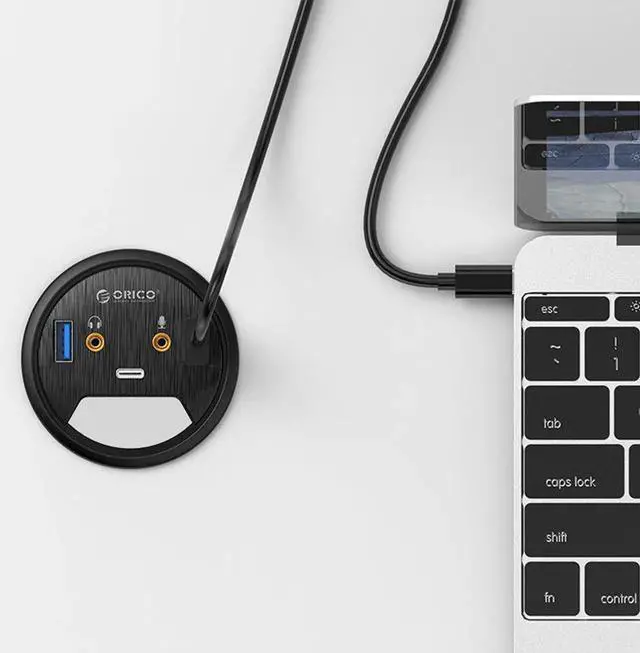 Desktop Grommet USB 3.0 HUB Type-A Type-C Audio Port Dongle Splitter Multi-Function Power Table Mounting Adapter