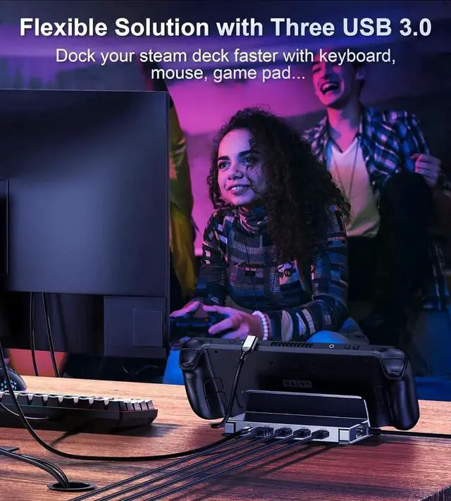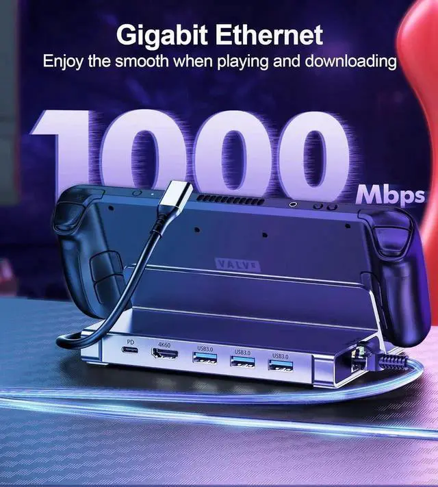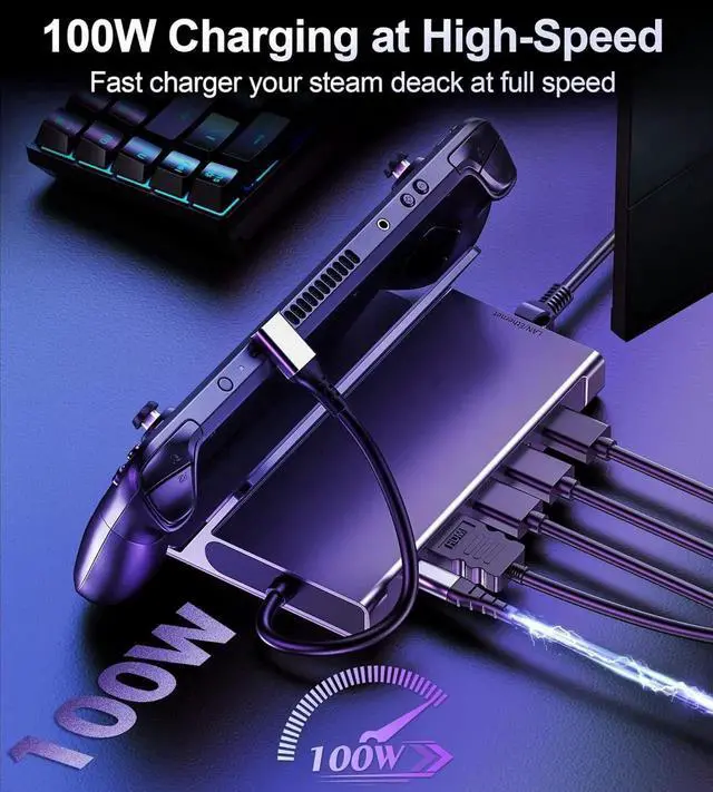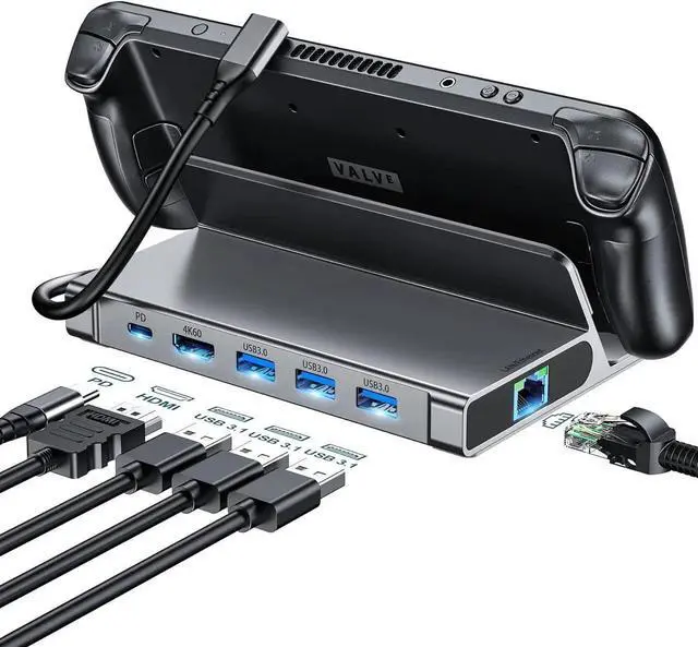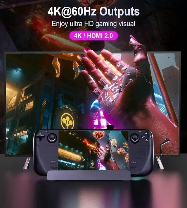Compact Size Portable Wherever: Blending usb c hub and gaming stand together perfectly into a all in one steamdeck docking station, this docking station can tidy your desktop, and its compact size also make it convenient to take it with you on the go in case you need to have more expandability.