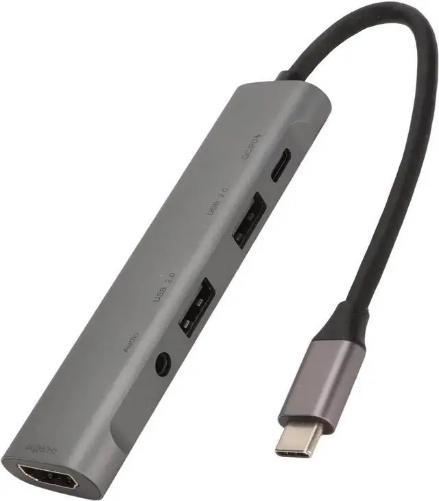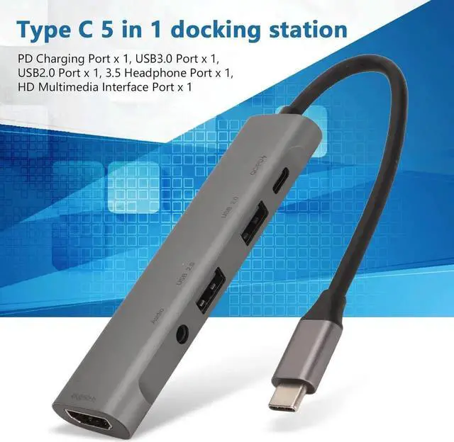 Versatile Connectivity: Our USB C Hub offers a 5-in-1 multiport solution, expanding your device's capabilities with a PD charging port, USB3.0, USB2.0, 3.5mm headphone jack, and HD Multimedia Interface port.