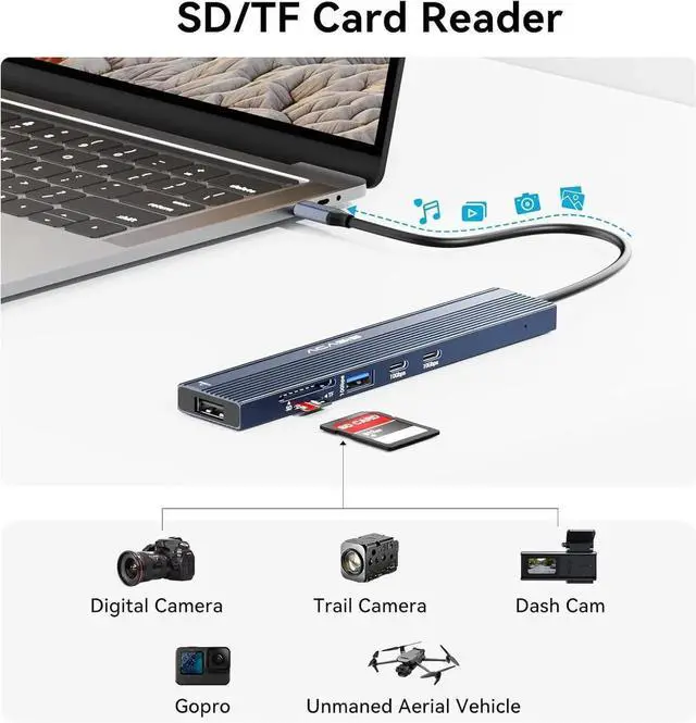 ACASIS 8-IN-1 USB C To DisplayportPlug and play. With this usb c hub multiple adapter, you get 4K DP Alt Mode Video Output, 3*USB3.2Gen2 (10Gbps Data Transfer+Only supports powering 4.5~7.5W devices), USB 2.0(480Mbps), SD/TF Card Read , 100W PD Charging Please ensure your laptop has Thunderbolt 3 /4 or USB C port supports Power Delivery,Display Port and Data Transfer.