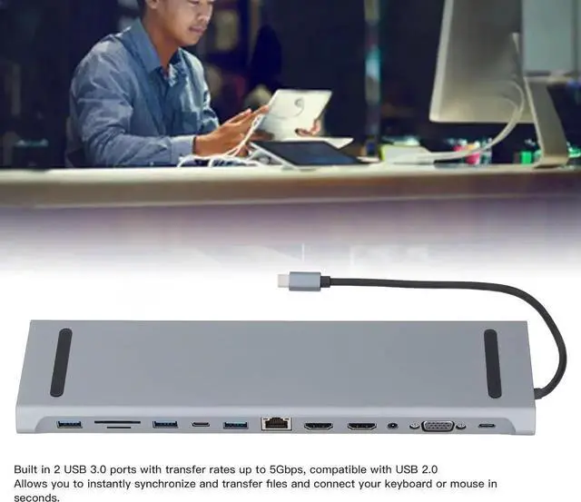 Hub Docking Station, 12 in 1 100W Fast Charging Type C Laptop Docking Station, USB C Dock, Multiport Adapter Hub, for Office