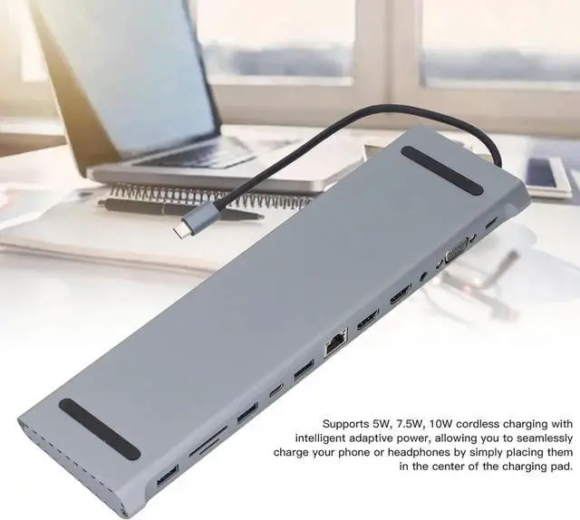 Hub Docking Station, 12 in 1 100W Fast Charging Type C Laptop Docking Station, USB C Dock, Multiport Adapter Hub, for Office