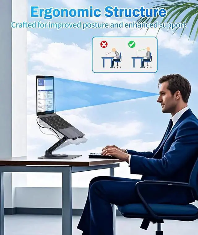 Wide Compatibility & Portable Design Compatible with MacBook Pro/Air, Dell, HP, Surface, Lenovo, and other mainstream laptops. No additional drivers required, plug and play. With a folded size of 26.5×5.7×2.2 cm, this laptop docking station stand is lightweight and portable, perfect for office, travel, or home use, letting you expand your device'capabilities anytime, anywhere!