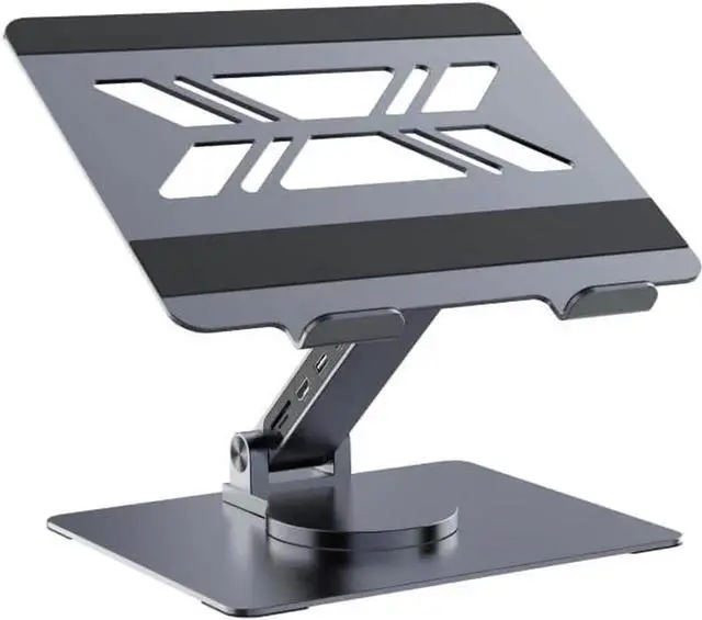High-Speed Data Transfer & PD Fast Charging Equipped with USB 3.0 ports, this laptop stand with USB ports supports up to 5Gbps transfer speeds for ultra-fast file transfers. The PD fast charging (up to 100W) quickly powers up your laptop, tablet, or smartphone, keeping your devices running all day.