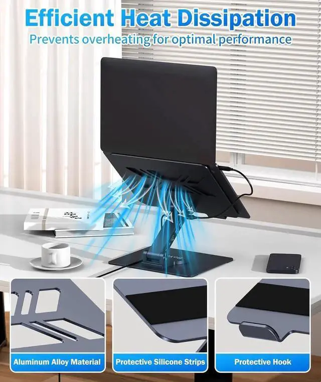 Ergonomic & Cooling Design This laptop dock stand unfolds into a stable laptop stand, elevating your device to an optimal viewing angle, reducing neck and shoulder strain for comfortable long-term use. The aluminum alloy construction enhances heat dissipation, effectively lowering device temperature and ensuring stable performance.