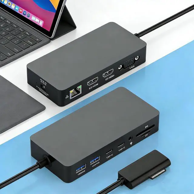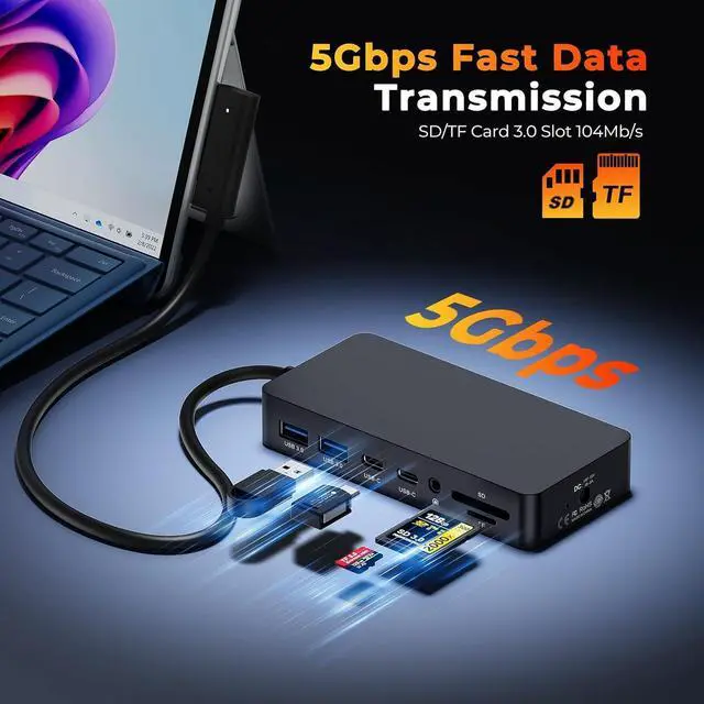 Blazing-Fast Data Transfer Surface Docking Stationour microsoft docking station is engineered for creative professionals who can' t afford bottlenecks. Two USB 3.0 ports and two USB-C ports deliver 5Gbps speeds for rapid file transfers from external SSDs and cameras, while the integrated SD/TF card slots support up to 104MB/s. This microsoft surface pro docking station eliminates the wait time when moving 4K footage, RAW photos, or large design files, making it the ultimate companion for photographers, video editors, and graphic designers.