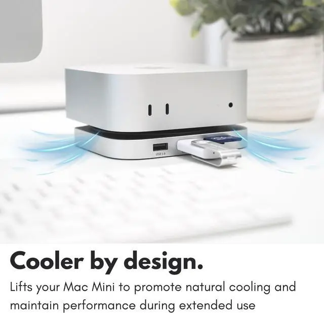 ALL-IN-ONE DOCK + STAND WITH POWER BUTTON ACCESS: The M4 Mac Mini dock transforms your setup into a more efficient workspace by combining a USB hub, SSD enclosure, and stand in one compact base with easy access to the power button. Mac mini docking station for proper setup!