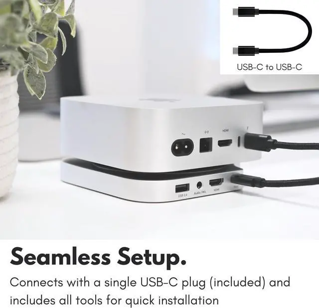 SINGLE-CABLE MAC SETUP: A single USB-C connection to the mac mini m4 docking station keeps your setup clean, efficient, and in line with Apples plug and play philosophy.