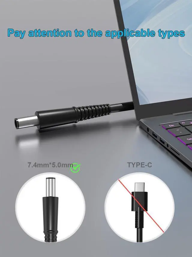 DC Power Jack Connector Type: 7.4 mm* 5.0 mm. (It is not fit for laptops dock devices requiring more than 180W)