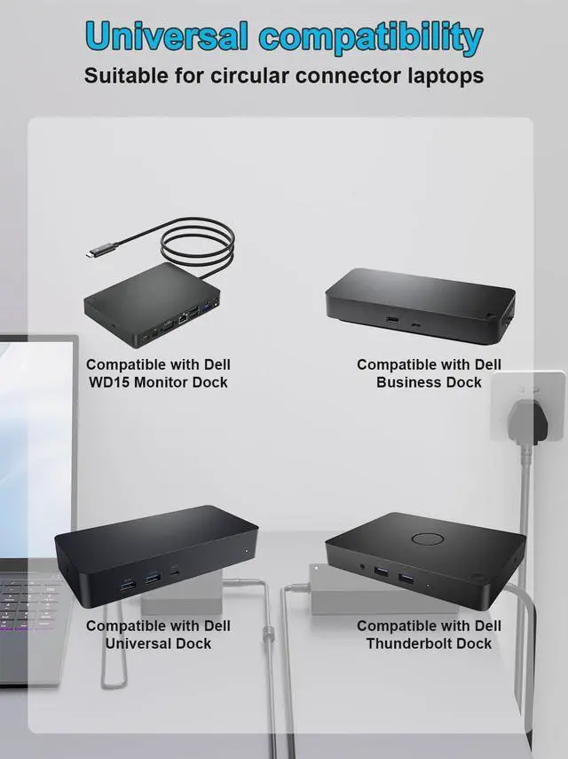 Compatible with Dell WD15 Monitor Dock 4K (450-AEUO 450-AFGM 7FJ4J 4W2HW 6GFRT 3DR1K 03DR1K), Business Dock WD15 K17 K17A K17A001 RD43V 452-BDDU, Dock WD19 (KXFHC 210-ARIQ), Dock WD19S (K20A K20A001), Universal Dock UD22 (K22A), Universal Dock D6000 D6000S (452-BCYT), Pro Dock WD25 (PTC1N 210-BRPX), Pro Smart Dock SD25 (8NNNY 210-BRQC), Pro Thunderbolt 4 Smart Dock SD25TB4 (R56G3 210-BRQK)