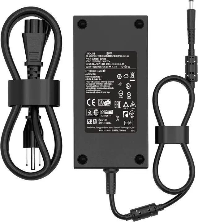 MOLIDZ 180W Charger Input: 100-240V 50-60Hz Output: 19.5V 9.23A 180W MOLIDZ 180W Charger Connector: 7.4 mm x 5.0 mm Tip Safety - Overvoltage protection, overcurrent protection, high temperature protection, Package: 1x AC adapter 1x AC power cable.