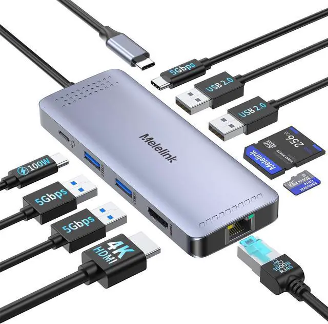 IN 1): This multifunctional usb c to hdmi adapter equipped with 1 x 4K @60Hz HDMI, 1 x Ethernet port, 100W PD Port, 3 x USB A&C 3.0 (5 Gbps), 3 x USB 2.0 ports and SD/Micro SD card reader slot. This usb c adapter is an ideal gadget for most laptops, tablets with thunderbolt 3/4 type c port.