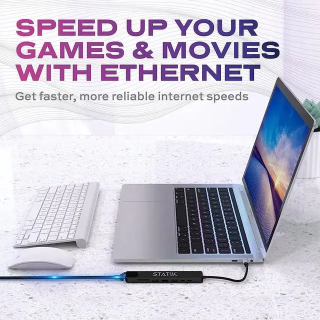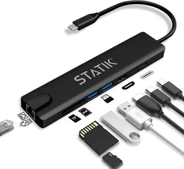 -: Features include an USB HDMI hub port supporting 4K video, a high-speed 100Mbps Ethernet port for fast internet connectivity, and SD/TF Card reader for quick and easy data transfer. It is a USB to USB C hub ethernet HDMI designed with your needs in mind. With this USB C HDMI hub your laptop adapter multiport becomes an efficient workstation, making multitasking easier and productivity higher