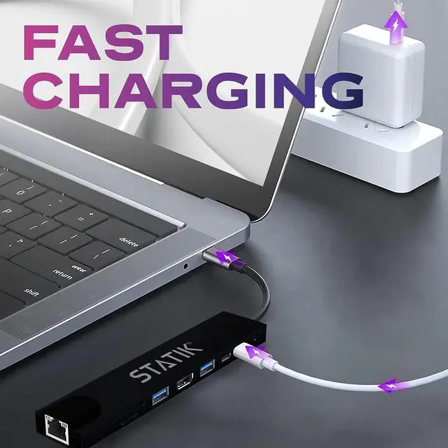 - The Statik UltraHub does not just stop at being a comprehensive USB dock, it goes beyond. This USB C dongle also doubles as an iPad Air stand and a MacBook Air docking station dual monitor, ensuring you are always ready for any task. Whether you need to present a business proposal or enjoy a movie, this hub has got you covered. An essential tool for every MacBook Pro owner, it is the USB dock you' ve been waiting for