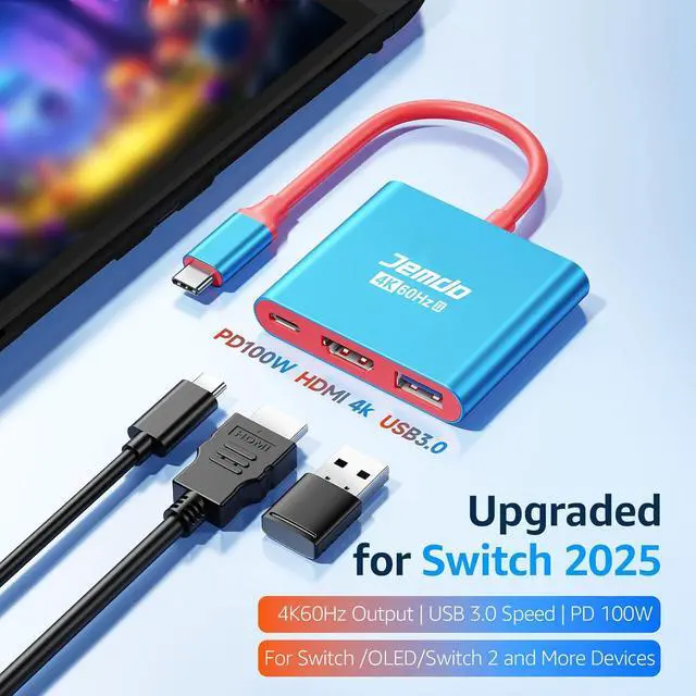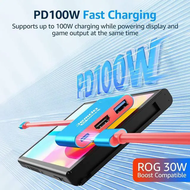 PD 100W Fast Charging While Outputting Video: Stay powered up while you play or work. JEMDO switch 2 portable dock supports up to 100W USB-C Power Delivery, letting you charge your Switch 2, laptops, tablets, or phones while streaming video output. Imagine fighting through an epic boss battle without worrying about your console dying mid-attack, or presenting in a critical business meeting without your laptop battery giving out. With stable, continuous charging, youll never be forced to choose between performance and power - just keep gaming, working, and winning.