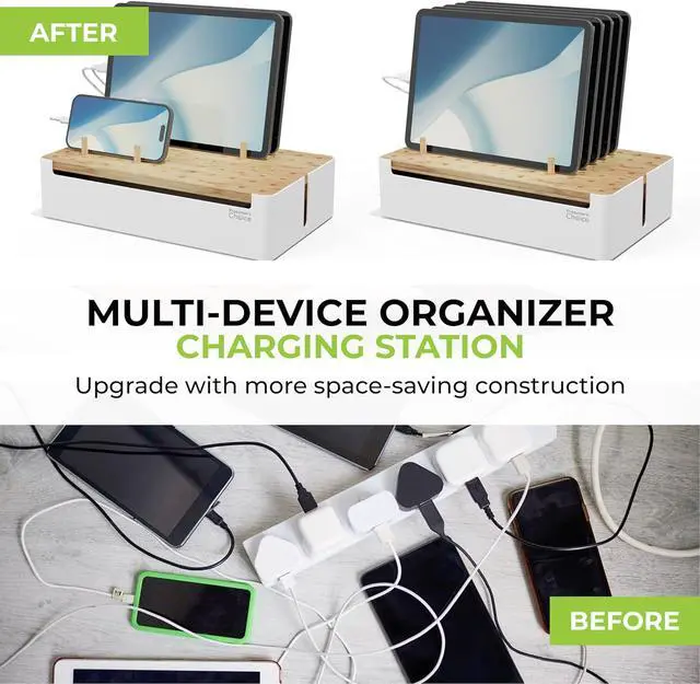 Organized Charging Hub: Transform cluttered areas with this multi charging station; designed to hold power strips up to 11 inches; ideal for organizing multiple devices in one place