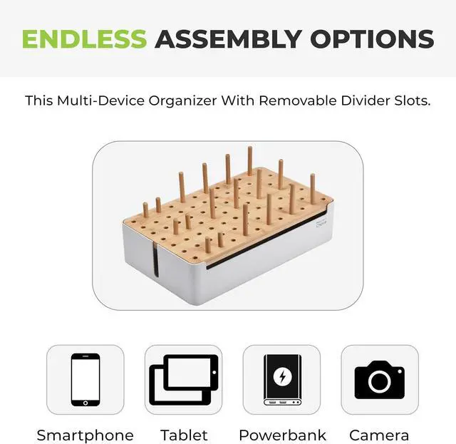 Versatile Cable Organizer Box: Use as a cable organizer box to manage cords and adapters; removable dividers allow you to customize spaces for devices, helping keep cords tangle-free and secure