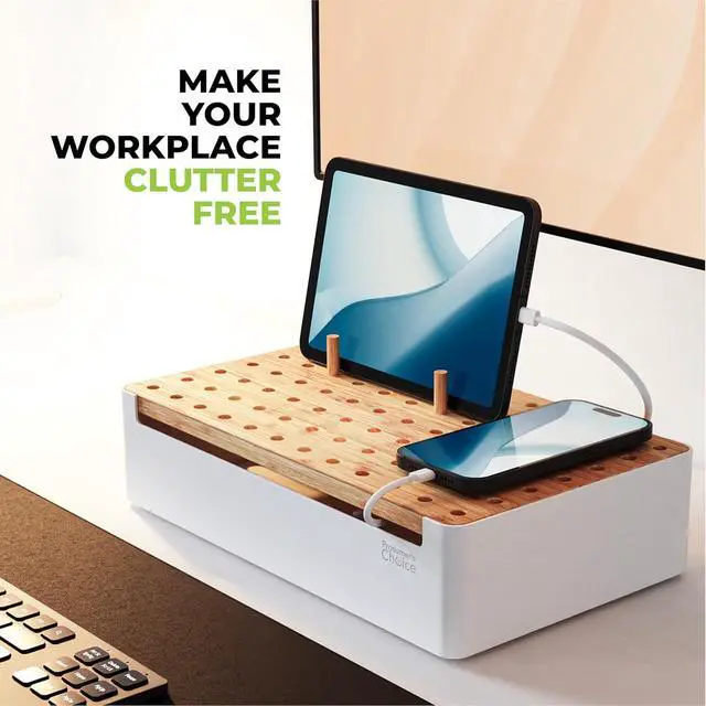 Sleek And Modern Design: This charging cord organizer blends seamlessly into your workspace; an eco-friendly, stylish solution for charging phones, tablets, and other electronic devices