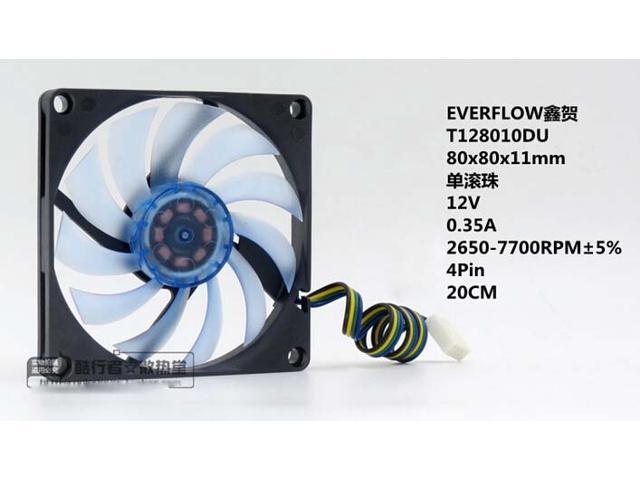 EverFlow 8010 T128010DU DC square Cooler with 12V 0.35A 4 Wires 4Pins Blue-transparent blades