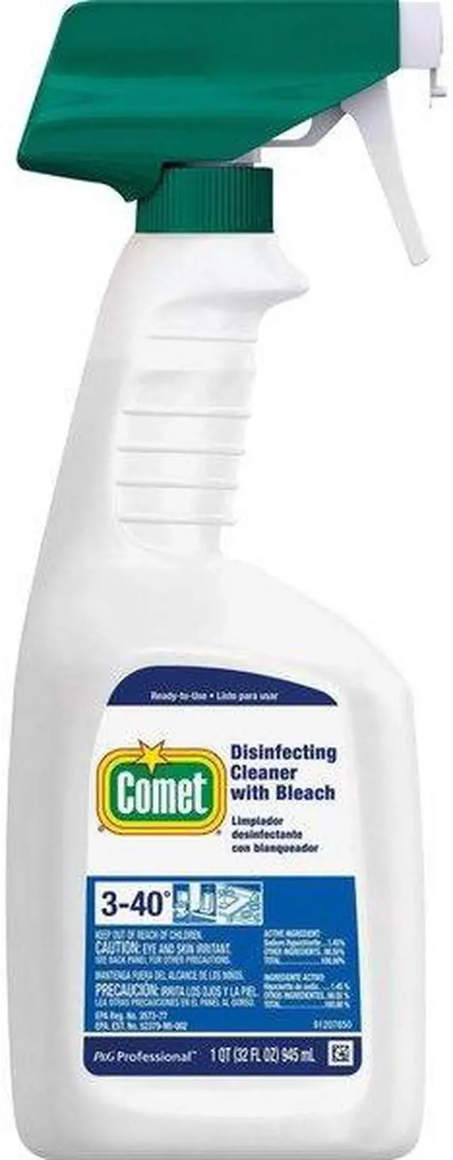 Multipurpose Disinfecting Cleaner with Bleach, Primary Chemical None, Container Type Trigger Spray Bottle, Container Size 32 oz, Ready to Use/Concentrated Ready to Use, Recommended Dilution Ready to Use, Fragrance Fresh, Cleaner Form Liquid, Surfaces for Use On Hard Nonporous Surfaces, Plastic, Standards EPA Registered, Targeted Pathogens No Efficacy, Product Series No Series, VOC Content 0 Percent, Flash Point 200 Degrees F, Includes Trigger Sprayer, Rinse Required Yes, NSF Rating Not Rated