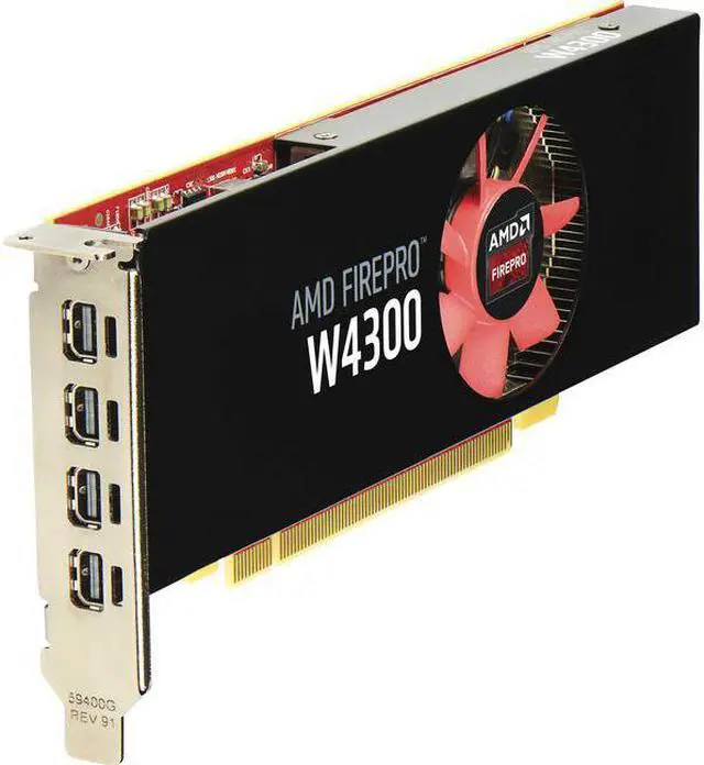 Name: AMD FirePro W4300 Graphic CardMarketing Information: Realize fast throughput, superb visual quality, and outstanding multi-display capabilities for your CAD, Engineering, and Media & Entertainment applications with the single-slot, low profile, low-power AMD FirePro™ 4300 graphics card with 4 GB GDDR5 memory. Features Get support for your professional software with a graphics card that's optimized and certified for more than 100 different leading workstation ISV applications. Balance GPU compute and 3D workloads with AMD's Graphics Core Next (GCN) architecture. Direct Graphics Memory Access (GMA) enables high throughput and low latency data transfers. GeometryBoost improves GPU processing speed of geometry data. Experience superb visual quality from four DisplayPort 1.2 a outputs and drive up to four 4K displays natively from a single card. Manage your multi-display screen setup as one display with AMD Eyefinity. Enjoy low power consumption of <50 watts reinforced by AMD PowerTune, which dynamically monitors and manages the GPU's power draw to enable higher clock speeds and help improve performance. The AMD FirePro W4300 is supported on the following