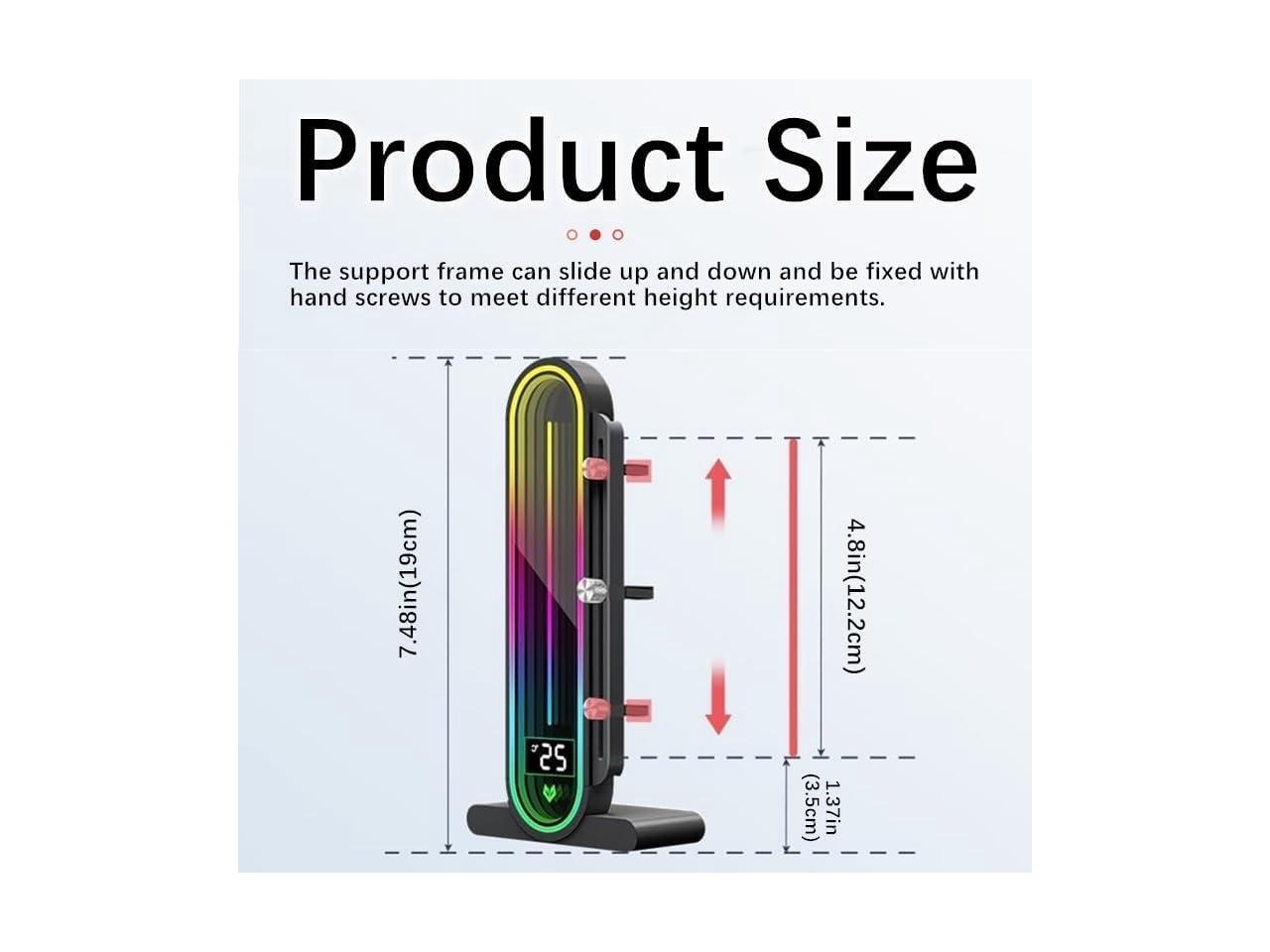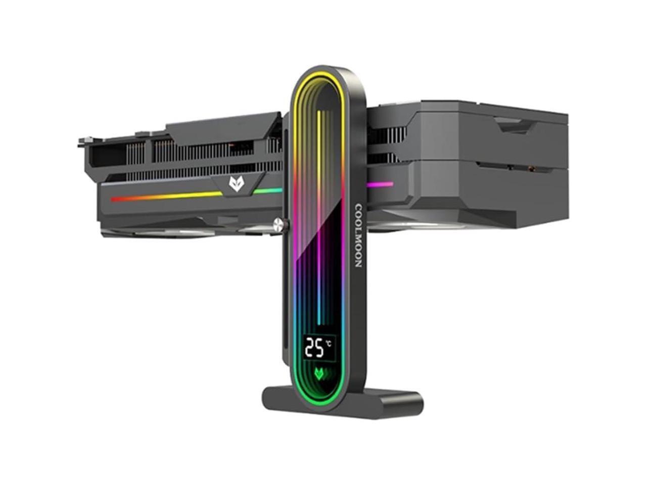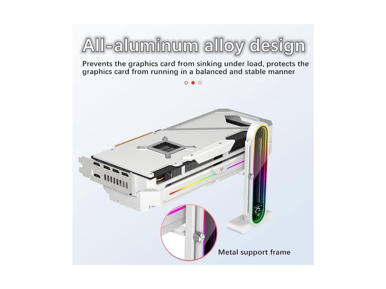 Graphics Card Support Bracket, Height Adjustable RGB GPU Stand with Temperature Display, 5V 3PIN Video Card Support Holder, Anti Sag Bracket & Magnetic Base for PC Graphics Cards - Black