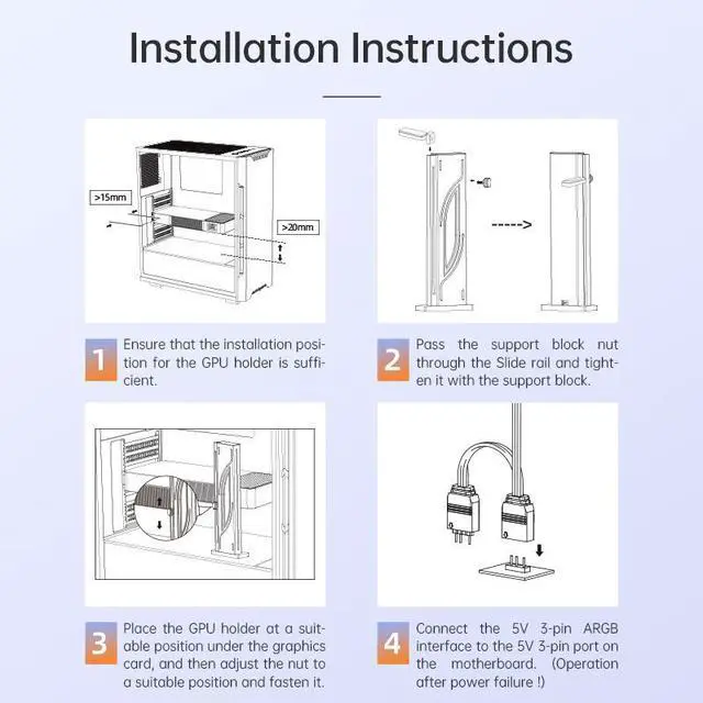 Easy Connection: This GPU support bracket can be connected with addressable 5V ARGB motherboard to control lighting via motherboard software. 5V 3PIN male interface is easy for expansion and connection.
