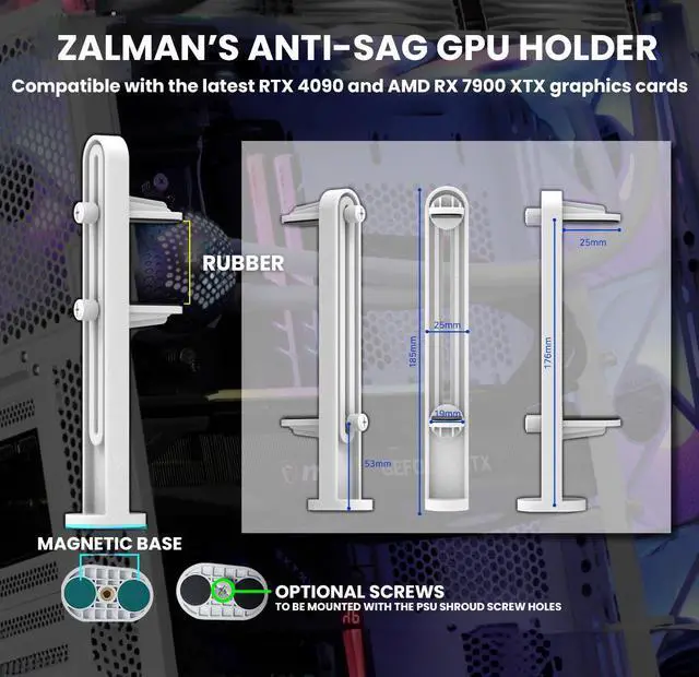Prevent graphics card sagging and unnecessary stress to your motherboard with our support bracket. Our tool-free design makes installation and adjustment effortless, so you can spend less time setting up and more time enjoying your high-performing GPU. With multiple orientation options and rubber-padded arms, our bracket offers the flexibility to customize the placement of your graphics card securely and seamlessly.