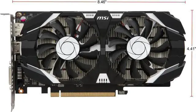 This GTX 1050 Ti 4GT OC model is factory overclocked to 1341 / 1455 MHz Base / Boost Clock (1290 / 1392 MHz Base / Boost for reference design) for better performance and smooth gameplay out of the box. The Military Class 4 components and a powerful yet quiet dual-fan cooling ensure optimized durability and stability you can count on in intense gaming.