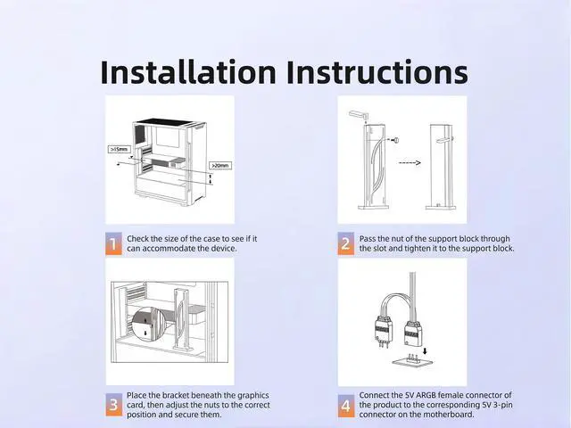 Eliminate Graphics Card Sagging Equipped with a sliding height adjustment function, it eliminates the risk of computer components sagging or deforming, ensuring long-term durability and structural integrity.