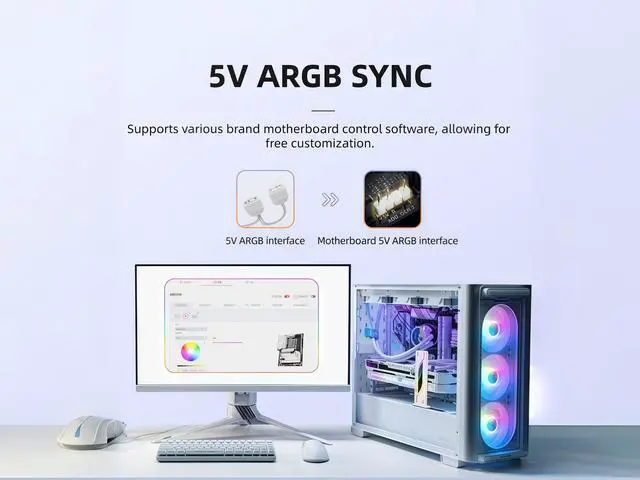 Dynamic ARGB Lighting This black computer stand is equipped with adjustable RGB lighting, offering a wide range of color and effect options, adding vibrant visual appeal to your assembly. And it can be synchronized with 5V 3-core ARGB motherboards or controllers to achieve personalized lighting scenes.