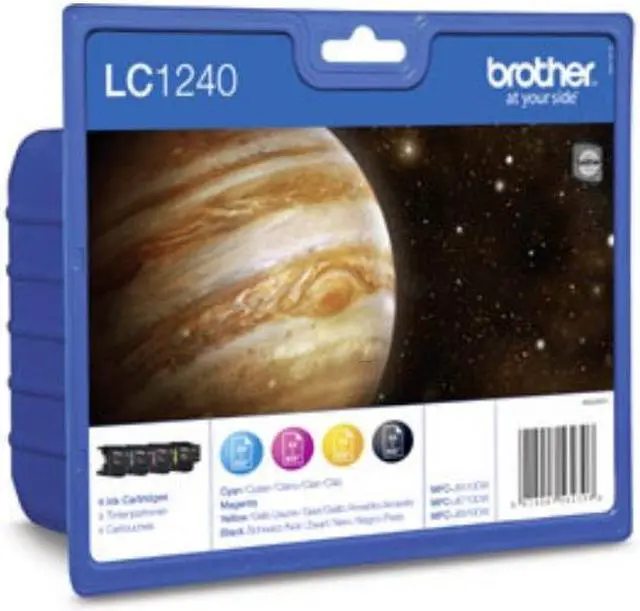 nsure that replacing your genuine Brother ink cartridges is as hassle-free and affordable as possible by purchasing this LC1240VALBP Multipack. The pack contains black, cyan, yellow and magenta LC1240 cartridges, all designed to help you get the best from your Brother printer. The LC1240BK, LC1240C, LC1240M and LC1240Y ink cartridges contained in this LC1240VALBP Multipack have been expertly designed to work seamlessly with your Brother printer, providing you with highest quality results, time after time. Though using cheaper, non-branded cartridges might save you money in the short-term, theyre not as compatible with your machine.
