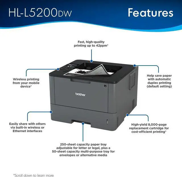 250-sheet capacity paper tray, 50-sheet capacity multi-purpose tray