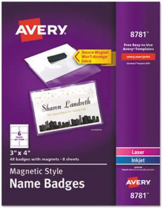 These Magnetic Name Badges feature a strong magnet that holds name badge in place without damaging material or flipping over. Featuring an easy-to-load pocket style design, the durable, PVC plastic name badge holder is reusable and displays names or information clearly. The white, micro-perforated name tag inserts separate cleanly, leaving smooth edges. Name tags are ideal for social or business events such as mixers, fundraisers, trade shows, networking events, sales meeting and conferences. The inserts are compatible with both laser and inkjet printers.