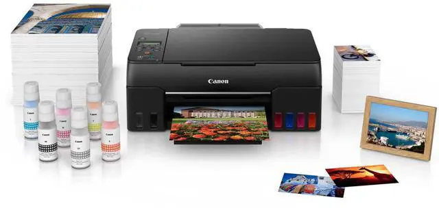 High Volume, Lost Cost, Quality Photo PrintingPrint more stunning photos for less with the PIXMA G620 Wireless MegaTank Photo Printer. With Wi-Fi built-in, grab your phone or laptop and start printing your favorite photos with ease. Print More For LessDesigned for high volume, low cost photo printing, the PIXMA G620 is perfect for memory makers & keepers for photo albums, scrapbooks, and more. High Page YieldWith the PIXMA G620 print up to 3, 800 4" x 6" color photos on just one full set of ink! Low Cost Per PrintWith an approximate ink cost of just 2.5 cents per 4" x 6" color photo you can print with peace of mind.