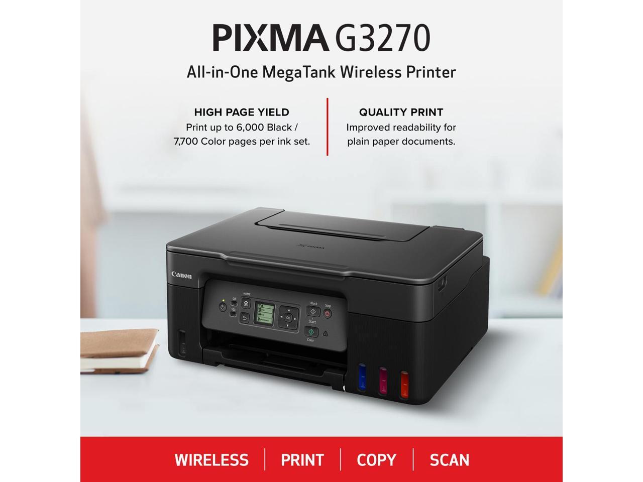 Canon PIXMA G3270 MegaTank All-in-One Wireless Inkjet Color Printer (Black) 5805C002