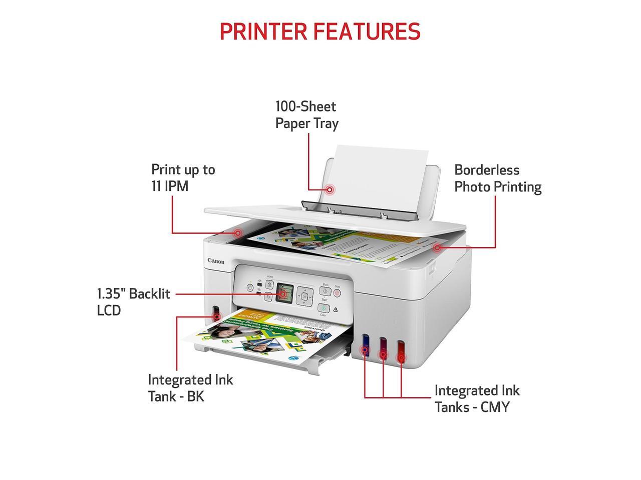 - Print up to 8.5 x 11" Borderless Photos