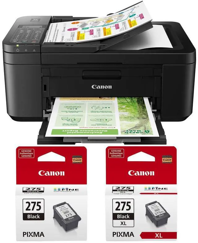 While compact in design, the PIXMA TR4720 Wireless All-In-One Inkjet Printer, bundled with Standard and High Capacity Black Ink Pack, offers a versatile and user-friendly solution for all your home or office printing needs. This high-performance printer boasts an easy setup process via the Canon PRINT Inkjet/SELPHY App, a 2-Cartridge hybrid ink system, and a front-loading 100-sheet paper tray for convenience. The PIXMA TR4720 excels in functionality, featuring Auto 2-Sided Printing for efficient paper use, an Auto Document Feeder for seamless multi-page scanning, and integrated Fax capabilities. It offers a plethora of connectivity options, allowing you to operate it from your PC or mobile devices.
