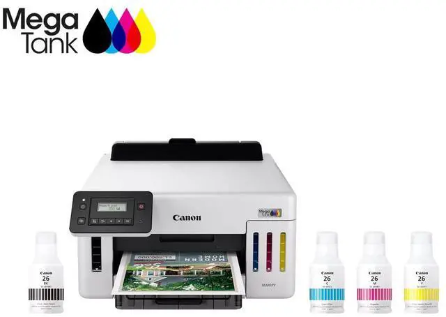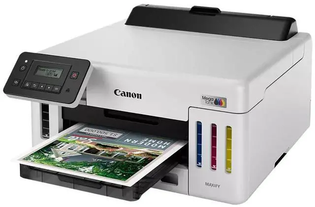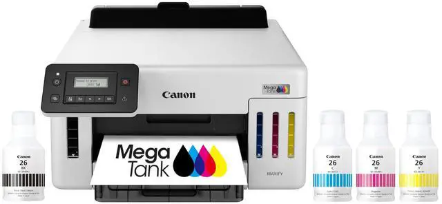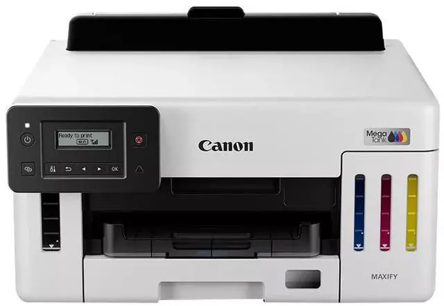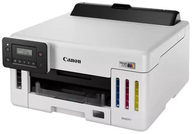 Designed for home offices and small businesses, the Canon MegaTank GX5120 delivers high-quality, low-cost printing, and outstanding wireless connectivity in a compact size. Get serious print productivity with a high page yield of up to 6, 000 Black & White / 14, 000 Color pages per full ink bottle set and a low cost per print of less than 2 cents per page. Each printer comes with a full set of ink so you can print with confidence. FeaturesUp To 2 Years of Ink IncludedPerfect for low-cost, high-volume printing. Up to 2 years of Canon genuine ink bottles included in the box.