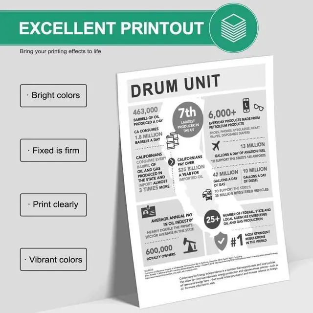Drum's unique formulation consistently delivers outstanding image quality, ensures long-life print system reliability and promotes superior sustainability.