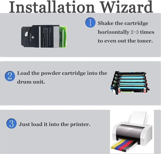 Product Description78C0Z50: for Lexmark C2325 MC2325 C2425 MC2425 MC2535 MC2640.Installation StepsStep 1 Shake the cartridge horizontally 2-3 times to even out the toner.Step 2 Load the powder cartridge into the drum unit.Step 3 Just load it into the printer.Warm tips: when purchasing the product, please refer to your first use of the product model,choose the model suitable for your printer.If you have any questions,please contact us directly.