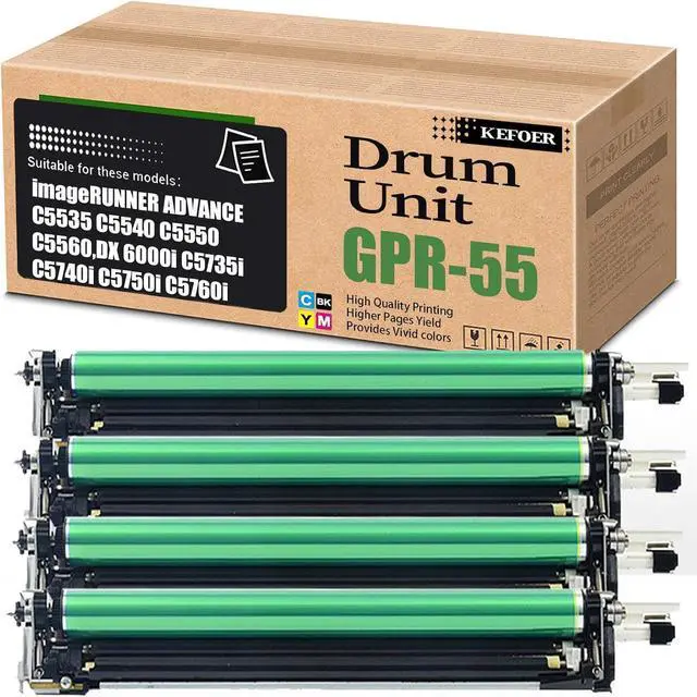 Help others learn more about this product by uploading a video!KEFOER Compatible High Yield Drum Unit 0488C003BA Replacement for Canon GPR-55 , for C5535 C5540 C5540i C5550 C5550i C5560 DX 6000i C5735i C5740i Printer (4Pack Black+Cyan+Yellow+Magenta)